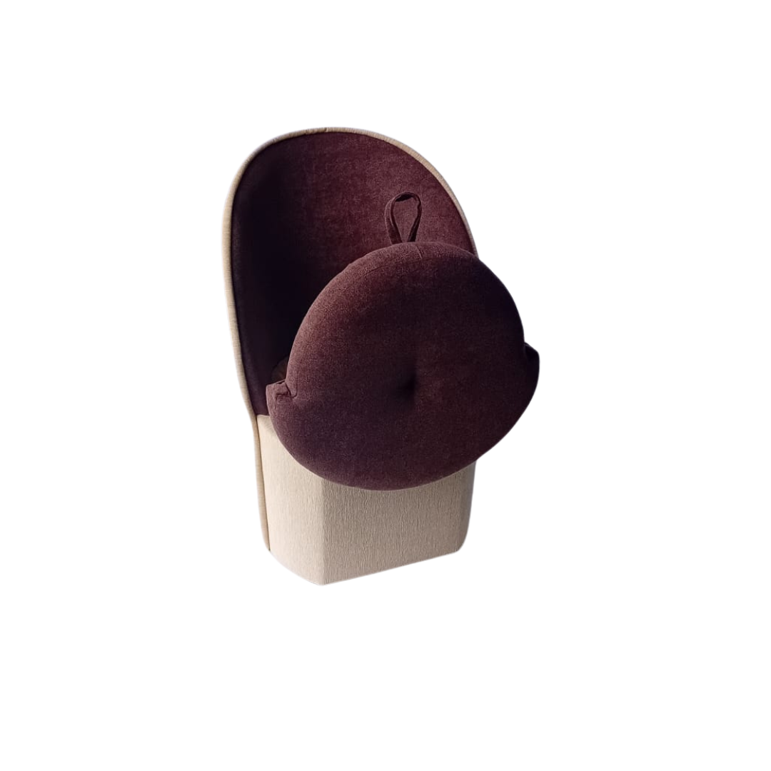 Niniejsza oferta obejmuje fotel kubełek Kalis pokryty gustowną tkaniną w kolorach ecru i brązowym.